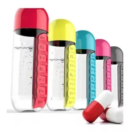 Nuevo material de almacenamiento ecológico sin BPA.Hay 7 cajas de pastillas en la botella que pueden llevar algunas pastillas si es necesario